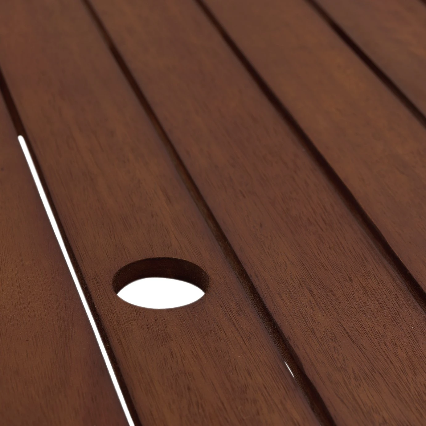 Want to relax under the shade? The dining table comes with a built in hole so you can add a parasol whenever you'd like.