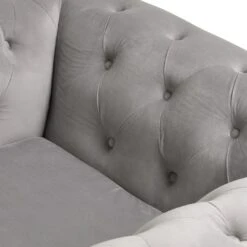 Our classic Chesterfield armchair is so incredibly inviting you'll want to stop and sit. Upholstered in rich velvet, this smart, dove grey charmer is everything an accent chair should be. Eye-catching, welcoming and full of character. Pleated padded arms and traditional button-back bring wrap-around luxury, while the deep seat cushion offers instant lounge appeal.