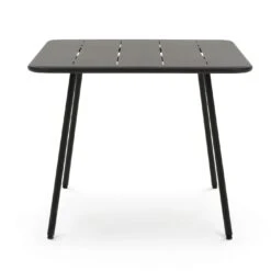Al fresco dining? It's a seasonal must. Set the scene with our striking 4 seater Indu dining set. The slatted chairs and matching table are crafted from black powder coated steel. Just the right finish to compliment the distinctive linear looks. And the stark dark design brings out the zing in colourful cushions too. Weather looking fine? Get the gang round. This patio set is made for good times.