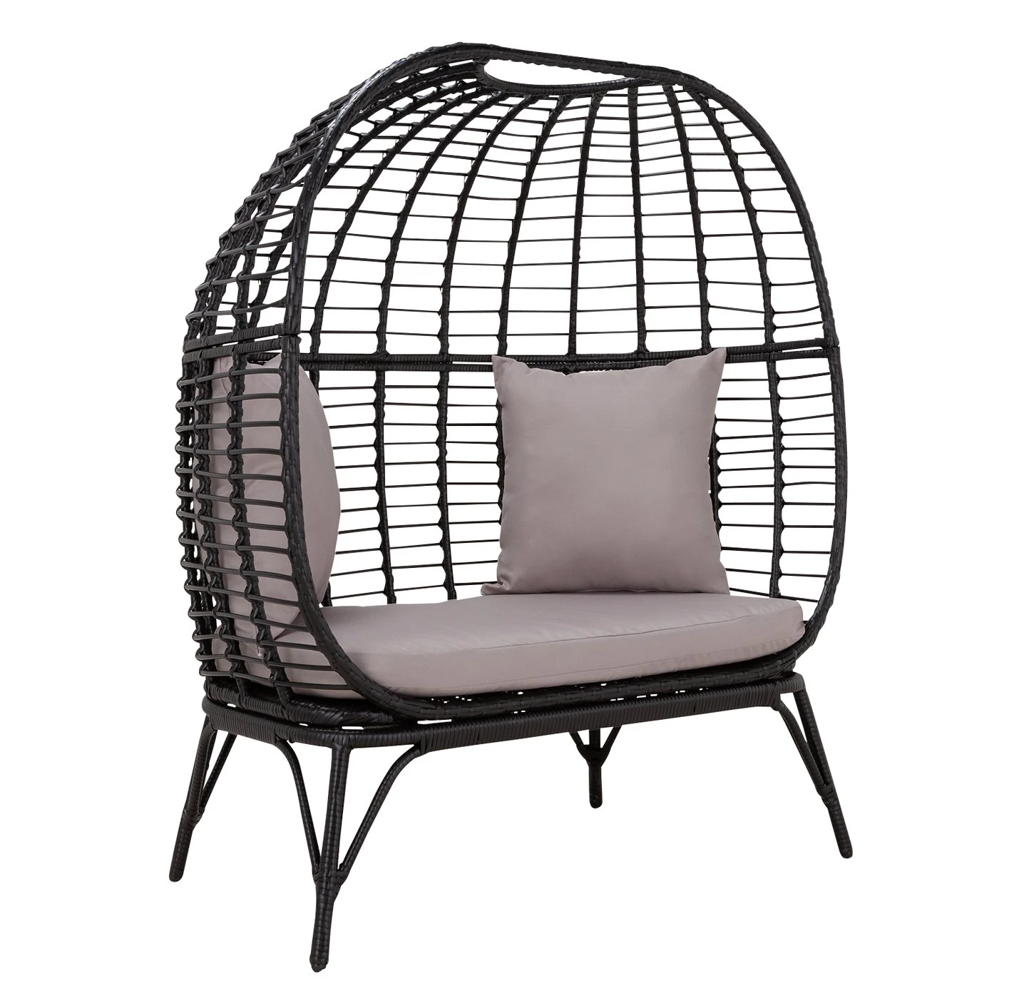Your very own secret garden. Our Rattan Egg Bench is a chic addition to any outdoor space. The rattan effect finish is bang on trend and the soft cushion and 2 throws makes it easy to create a cosy spot. Pair with a stylish side table to create Instagrammable focal point for your garden. This two seater size is perfect for cuddling up together.