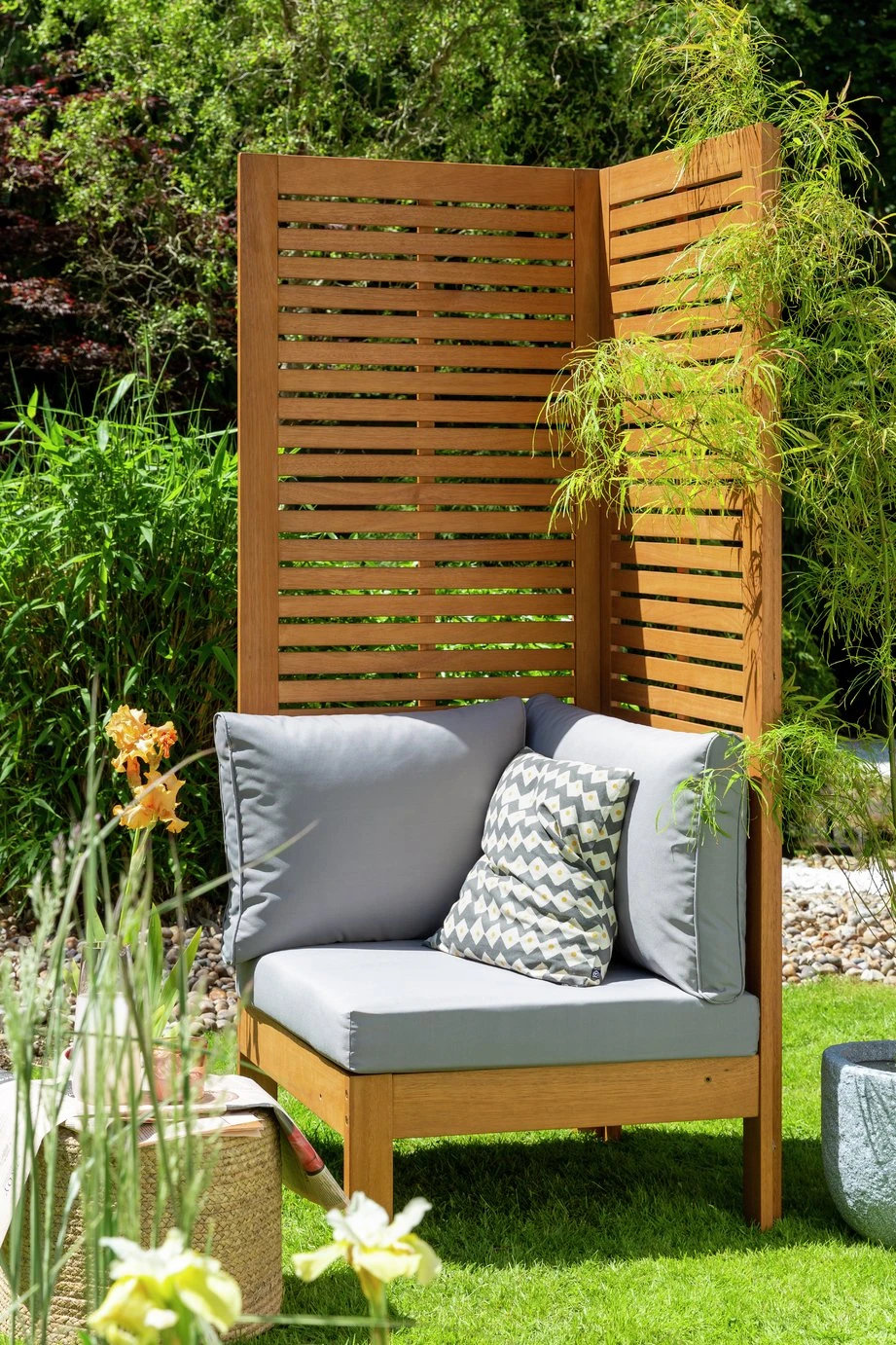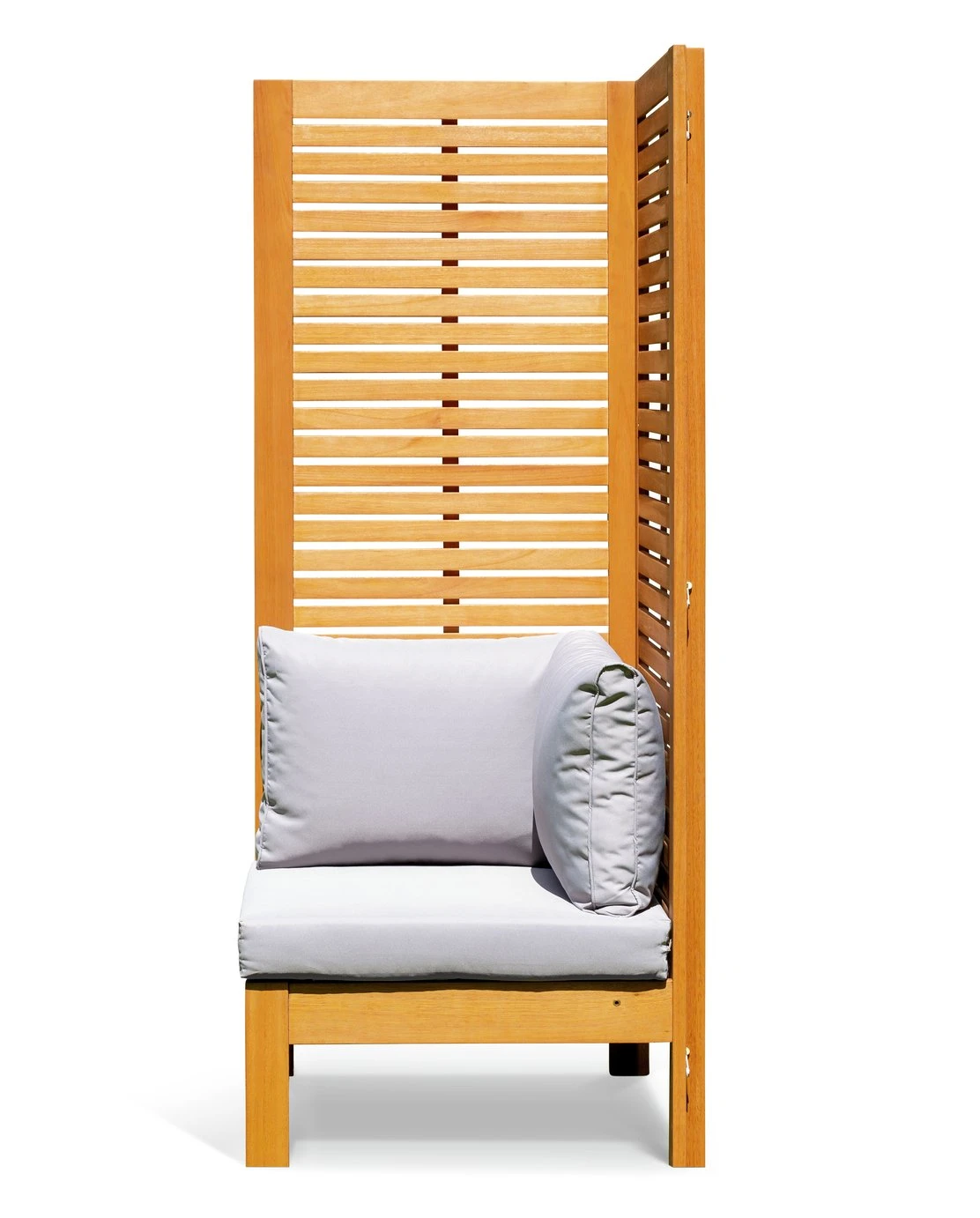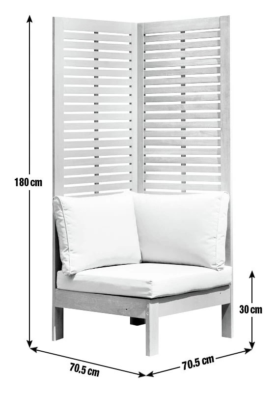 Outdoors is the new indoors. Enjoy some alfresco relaxing with our smart, high-back seat bench. It's very versatile. Stand it against a wall and let flowering plants or vines climb the sides or use it to divide a space and create a small private area. Add a small table or two and Samoa is perfect for entertaining or cocktail spot in the sun for drinks with friends. Made from solid wood with easy clean, stain-resistant polyester cushions.